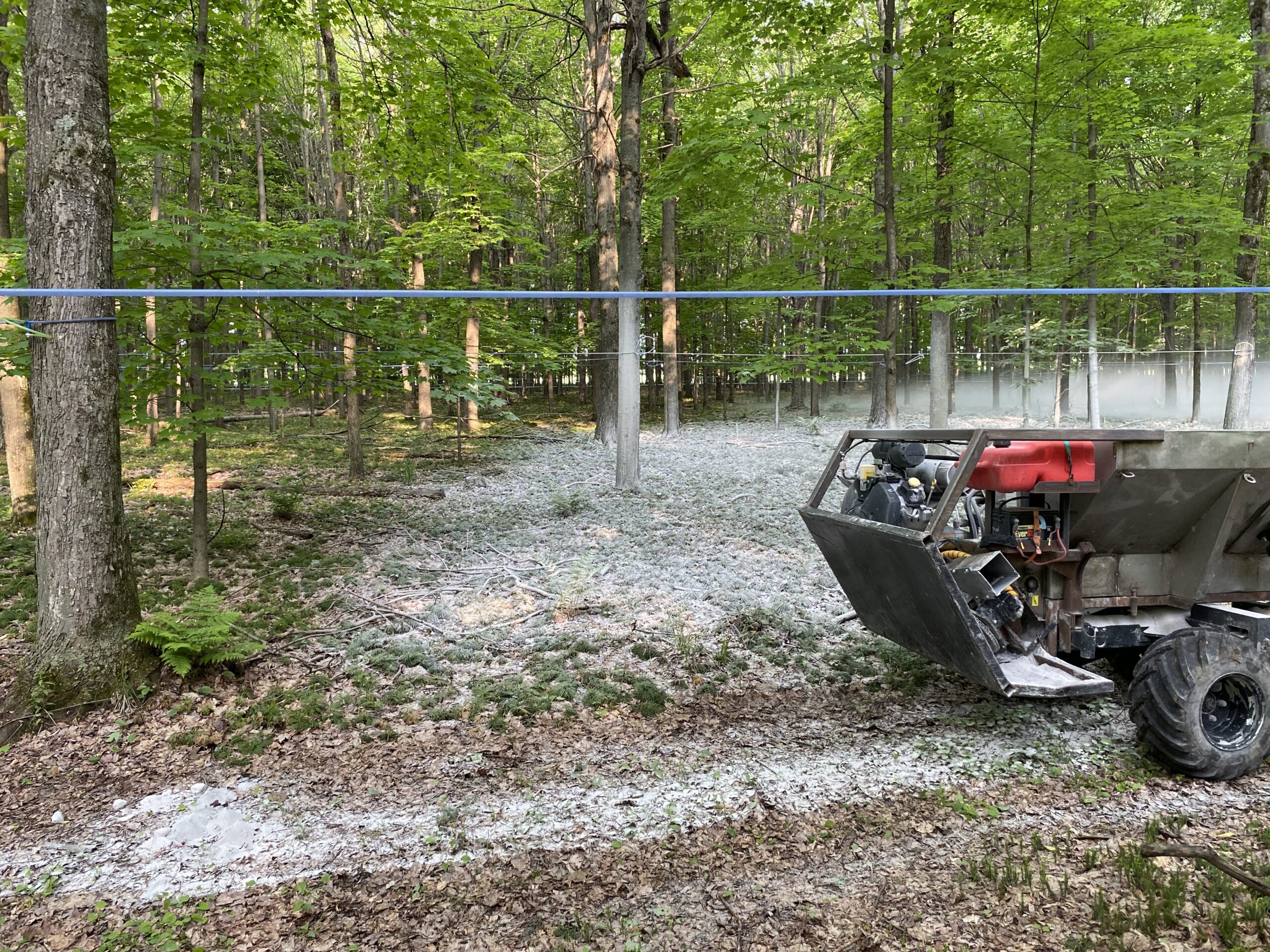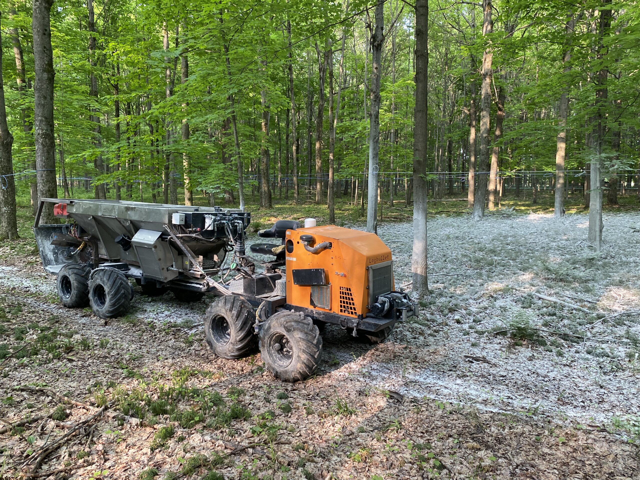 Je prends en charge l’ensemble des opérations, du transport de la chaux jusqu’à l’épandage précis en milieu forestier. Mon équipement compact est conçu pour circuler efficacement entre les érables sans perturber vos installations.